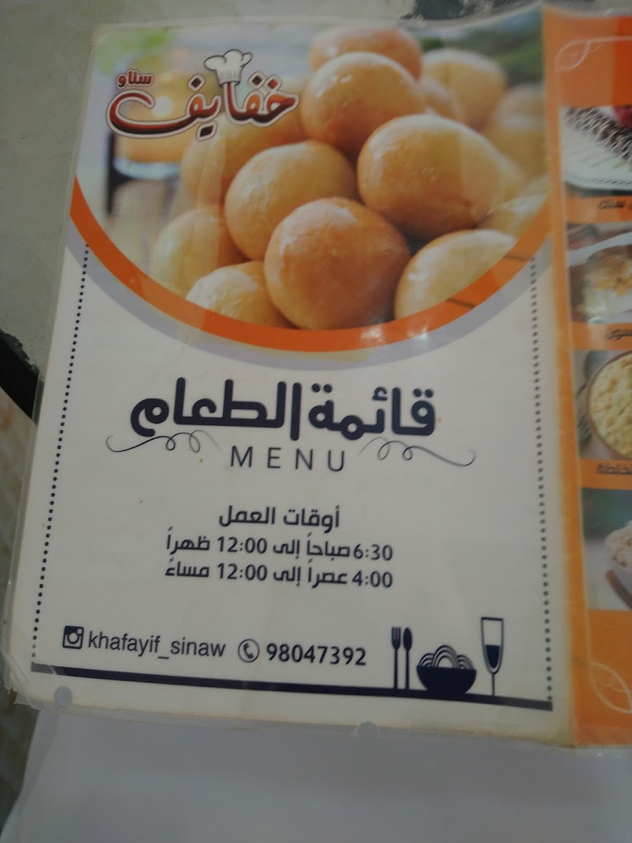 خفايف سناو - Khafayif Sinaw Cafe Menu